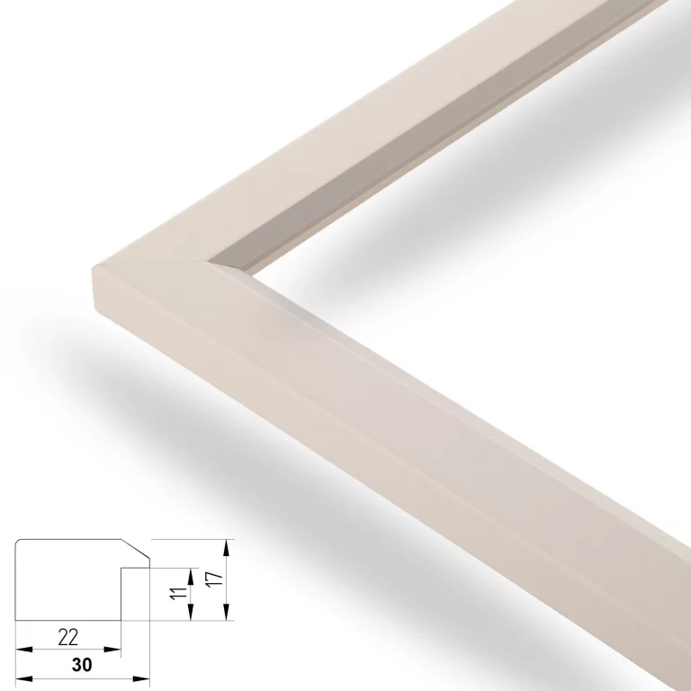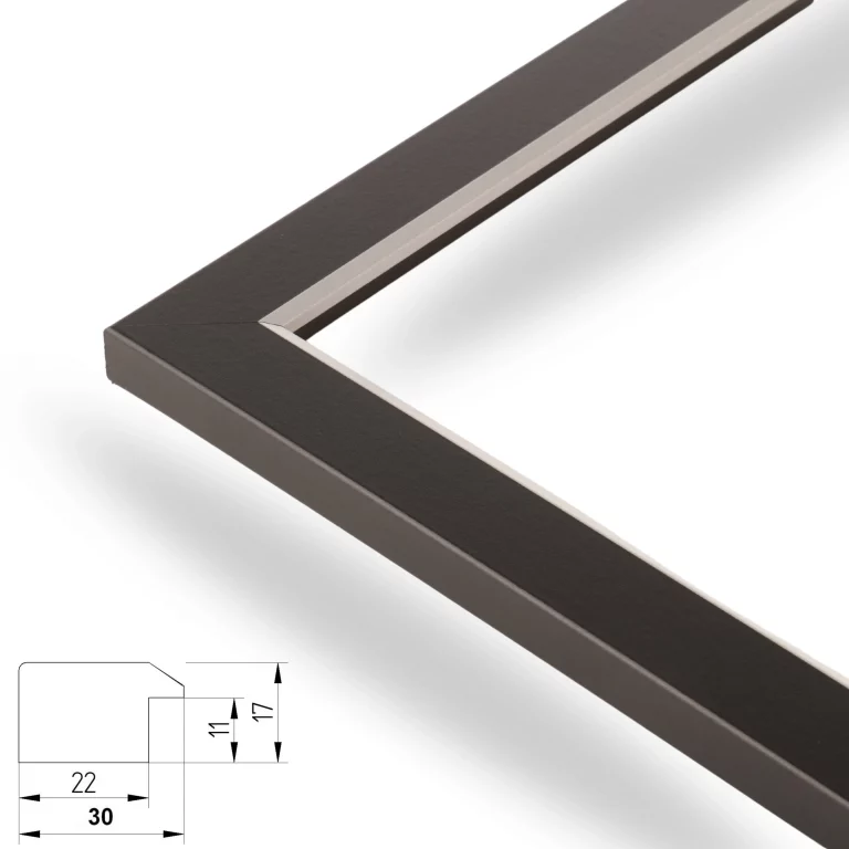 Mit unserem hochwertigen Bilderrahmen aus hochwertigem MDF-Holz verleihen Sie Ihren Bildern, Kunstwerken oder Postern eine elegante Note. Die Profilabmessungen betragen 30 mm x 17 mm. Dieser Rahmen kombiniert modernes Design mit praktischen Vorteilen und ermöglicht es Ihnen, Ihre Lieblingsmotive perfekt in Szene zu setzen. Der Rahmen ist vielseitig für die Wandmontage im Hoch- und Querformat geeignet, sodass Sie Ihre Bilder flexibel anordnen können. Wir bieten die Möglichkeit, Bilderrahmen nach Ihren Wunschmaßen zu fertigen – perfekt für einzigartige Formate. Kontaktieren Sie uns und teilen Sie uns Ihre Wunschmaße mit – wir kümmern uns um den Rest!