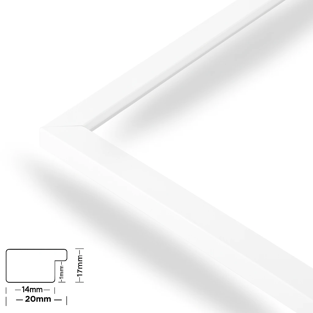 Dieser elegante Bilderrahmen aus MDF-Holz ist die perfekte Ergänzung für Ihre Wohnung, Ihr Büro oder andere Räume. Mit seiner schlanken Leistenbreite von 20 mm und einer Tiefe von 17 mm bietet der Rahmen ein modernes Design, das Ihre Bilder stilvoll in Szene setzt. Der Bilderrahmen ist vielseitig für die Wandmontage im Hoch- und Querformat geeignet, sodass Sie Ihre Bilder flexibel anordnen können. Wir bieten die Möglichkeit, Bilderrahmen nach Ihren Wunschmaßen zu fertigen – perfekt für einzigartige Formate. Kontaktieren Sie uns und teilen Sie uns Ihre