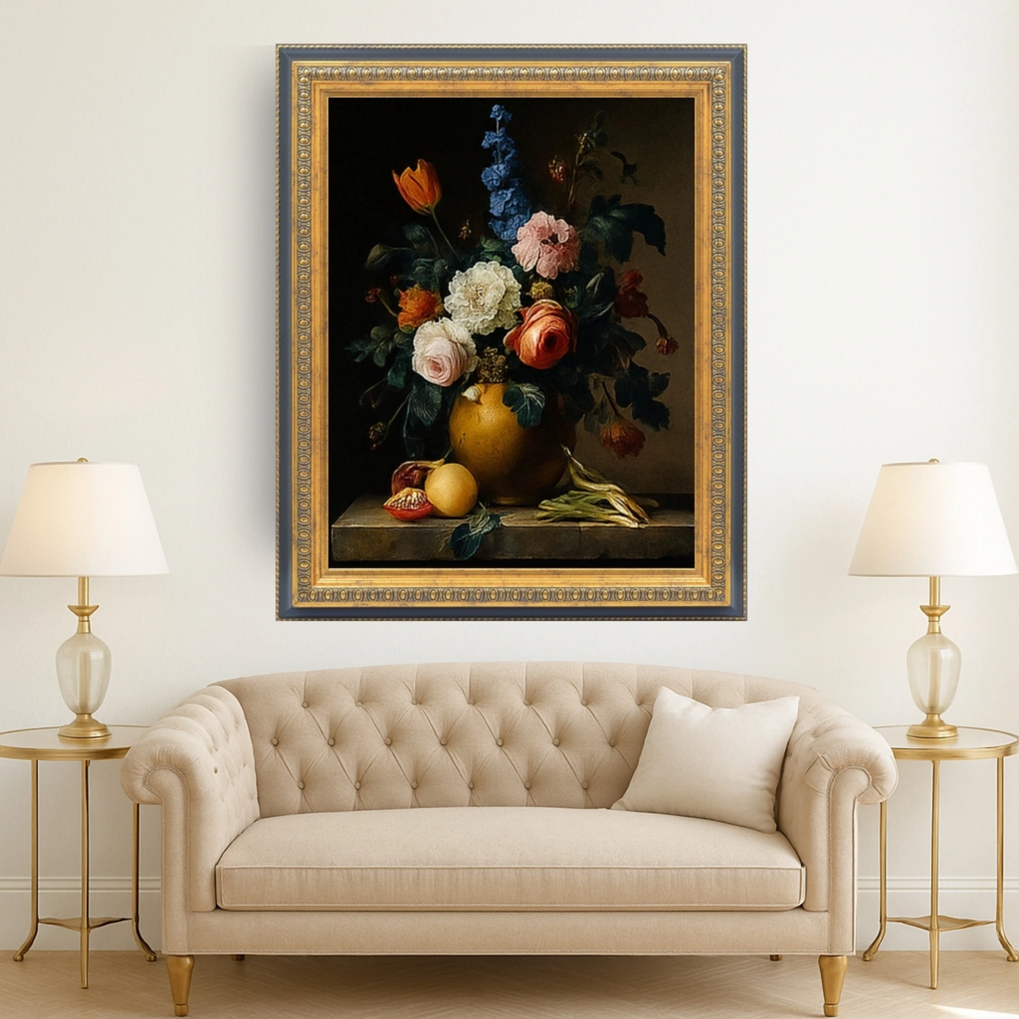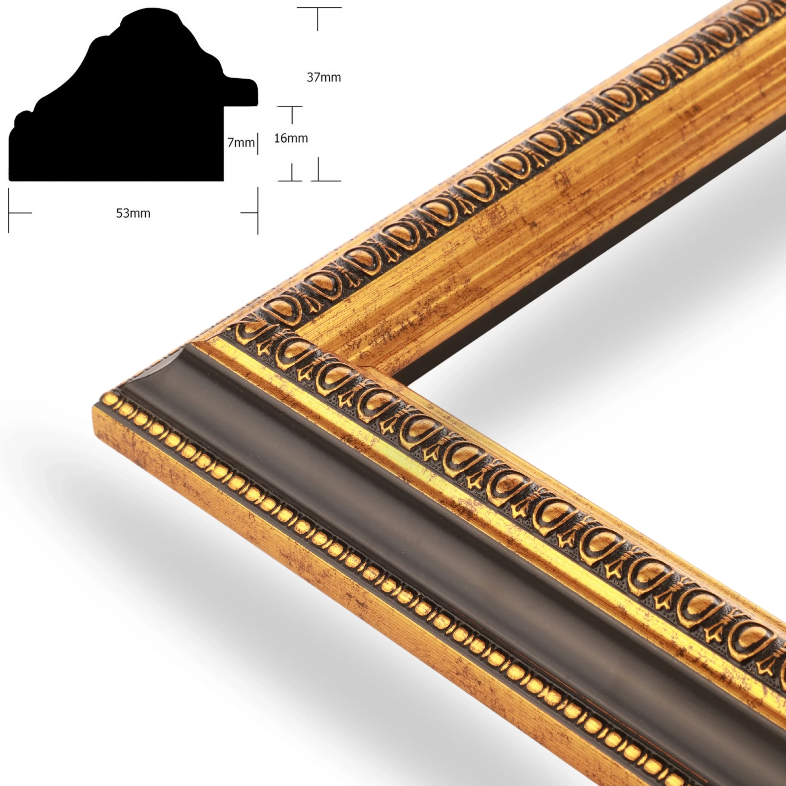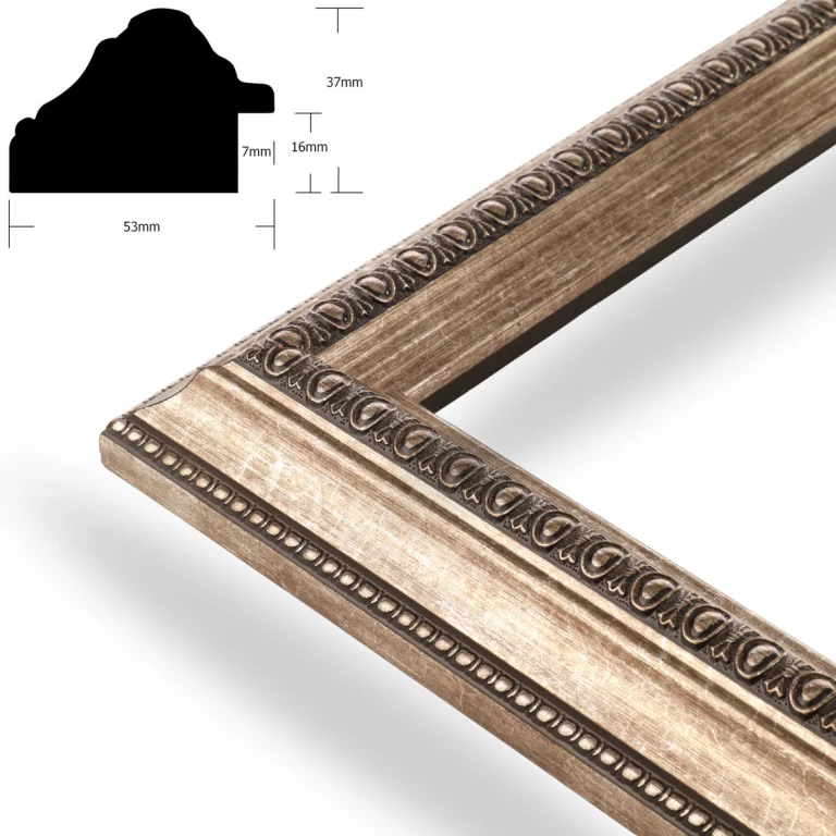 Dieser hochwertige Bilderrahmen im Barockstil verleiht jedem Raum einen Hauch von klassischem Charme und Eleganz. Der detaillierte Schnitzerei-Details und die antike Patina verleihen ihm ein authentisches barockes Aussehen. LUXOR-Barockrahmen sind 53 mm breit und 37 mm tief – und zudem in jeder Größe erhältlich. Der Rahmen ist handgefertigt aus hochwertigem Kiefernholz, was ihm eine robuste und langanhaltende Haltbarkeit verleiht. Dieser Rahmentyp eignet sich hervorragend, um Fotos, Kunstwerke, Spiegel und andere dekorative Gegenstände aufzuhängen. Der Bilderrahmen ist vielseitig für die Wandmontage im Hoch- und Querformat geeignet, sodass Sie Ihre Bilder flexibel anordnen können. Wir bieten die Möglichkeit, Bilderrahmen nach Ihren Wunschmaßen zu fertigen – perfekt für einzigartige Formate. Kontaktieren Sie uns und teilen Sie uns Ihre Wunschmaße mit – wir kümmern uns um den Rest!