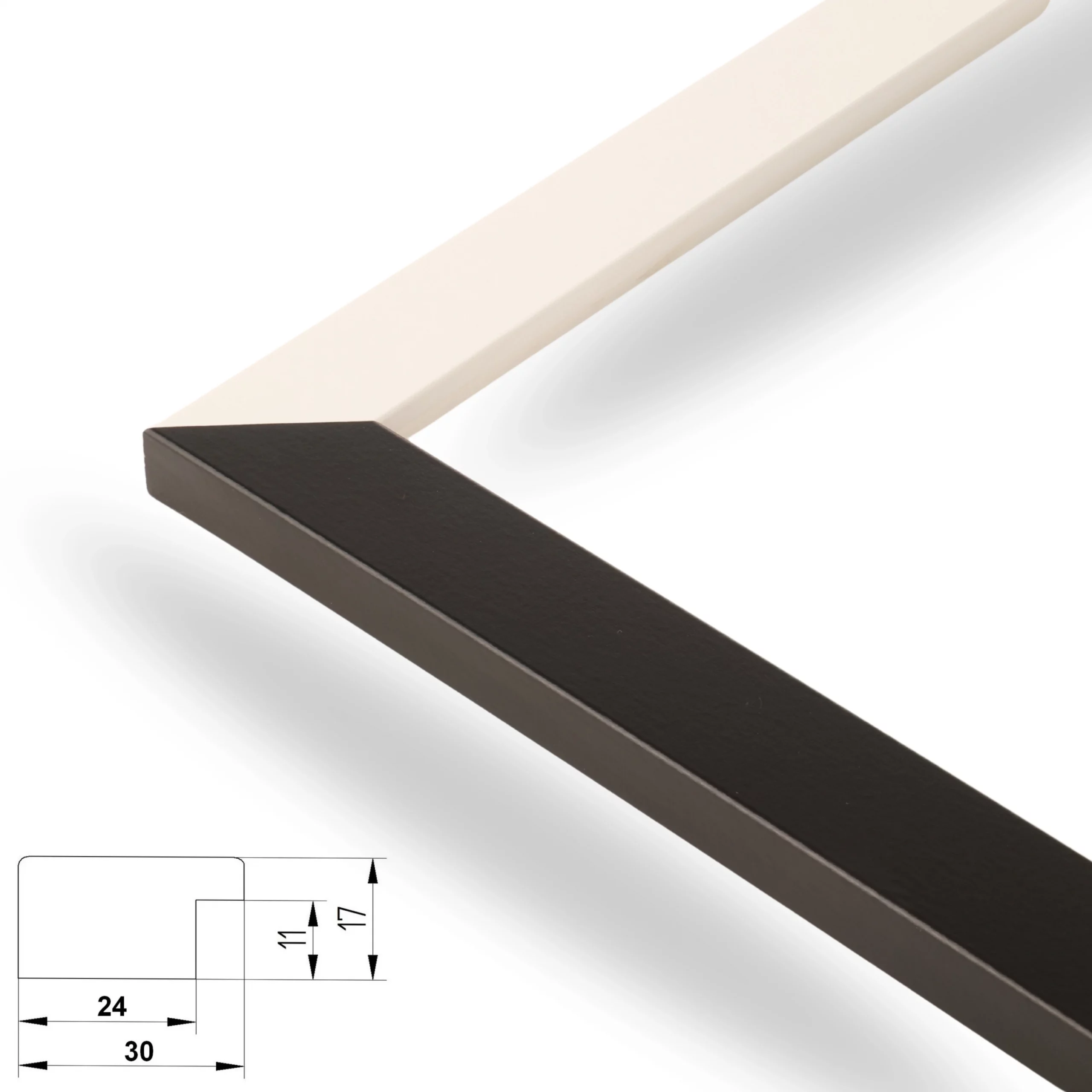 Bringen Sie Eleganz und gute Laune in Ihr Zuhause mit dem MDF-Holzrahmen „Modern“. Dieser hochwertige Bilderrahmen überzeugt mit einem zeitlosen Profil (30 x 17 mm) und ist in einer großen Auswahl an Farben/Dekoren und Größen erhältlich. Egal ob klassisch, modern oder elegant – dieser Rahmen passt sich jedem Einrichtungsstil an und setzt Ihre Fotos, Poster, Kunstdrucke oder Erinnerungen perfekt in Szene. Der Bilderrahmen ist vielseitig für die Wandmontage im Hoch- und Querformat geeignet, sodass Sie Ihre Bilder flexibel anordnen können. Wir bieten die Möglichkeit, Bilderrahmen nach Ihren Wunschmaßen zu fertigen – perfekt für einzigartige Formate. Kontaktieren Sie uns und teilen Sie uns Ihre Wunschmaße mit – wir kümmern uns um den Rest!
