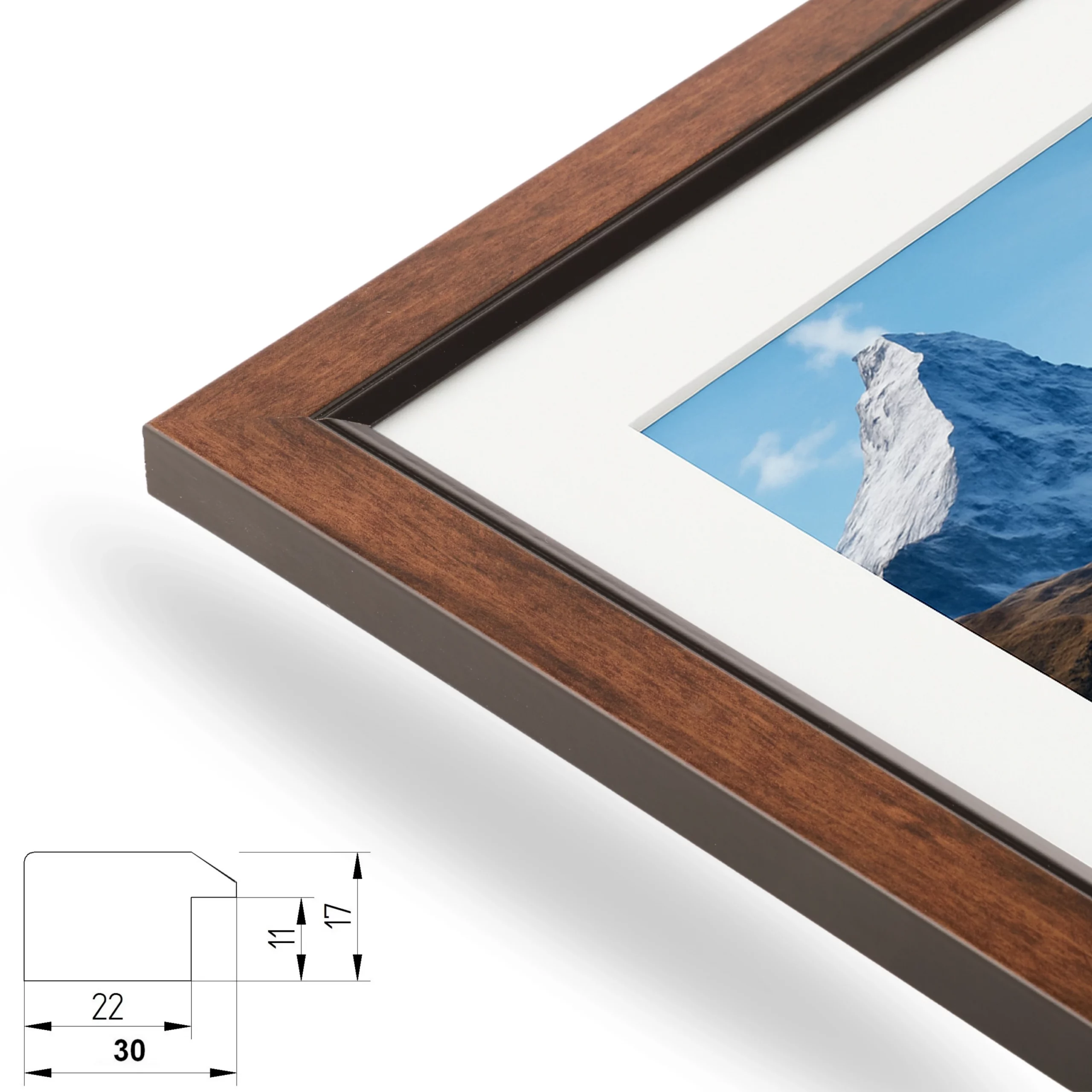 Hinweis: Das erste Maß bezieht sich immer auf die Rahmengröße, das zweite Maß auf das Bildformat bzw. den Ausschnitt des Passepartouts.