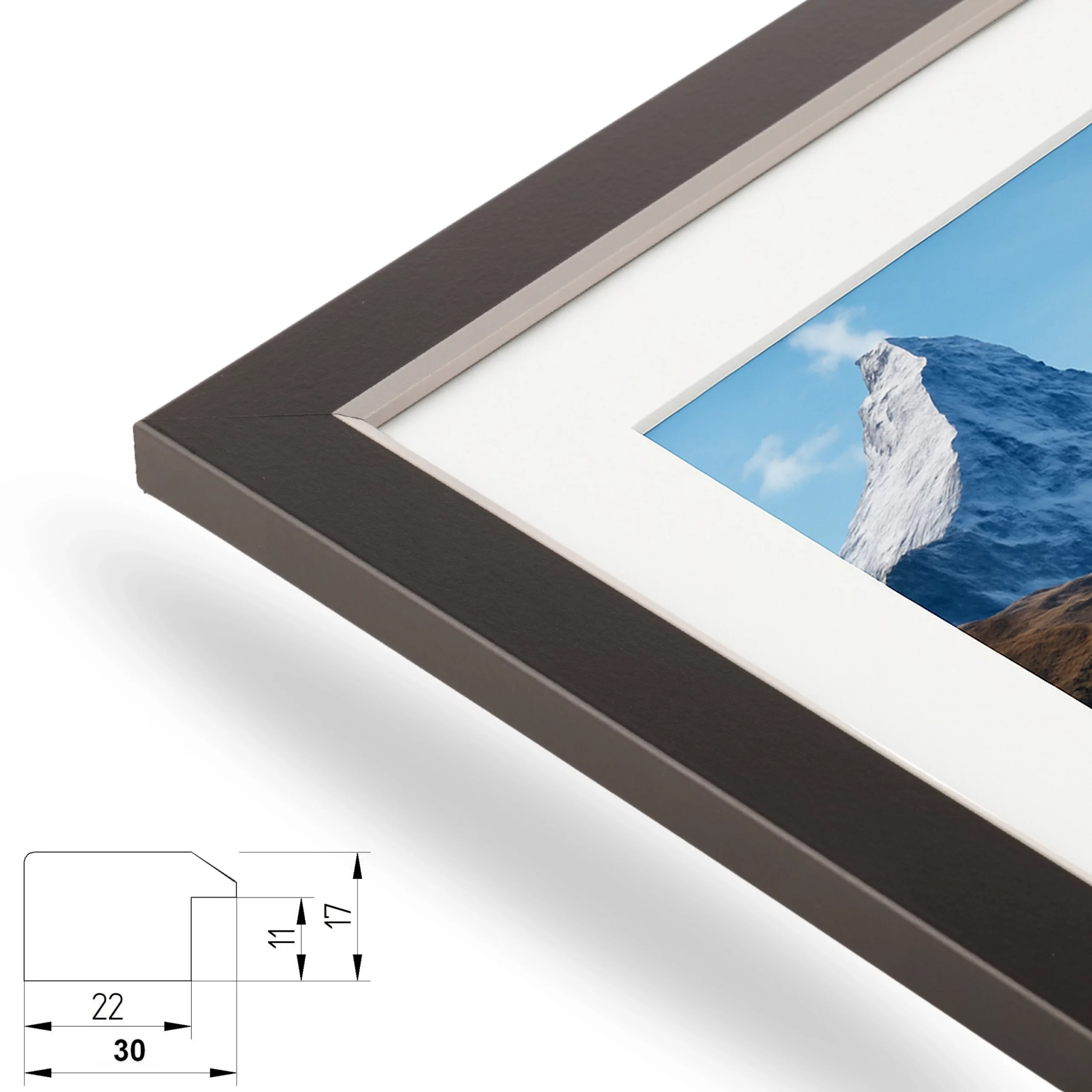 Unser Bilderrahmen mit Passepartout ist handgefertigt aus hochwertigem MDF Holz und verleiht jedem Raum einen Hauch von Eleganz und Charme. Das beigefügte Passepartout schafft eine zusätzliche Tiefe und hebt das Bild hervor, während es gleichzeitig einen stilvollen Rahmen bietet. Egal, ob du ein einzelnes Porträt, eine Kunstdruckserie oder eine Sammlung von Familienfotos präsentieren möchtest, dieser Rahmen ist die ideale Wahl. Mit seinem zeitlosen Design passt er perfekt zu jedem Einrichtungsstil, von modern über rustikal bis hin zu klassisch. Verleihe deinen Lieblingsbildern den Rahmen, den sie verdienen, und verschönere dein Zuhause mit diesem eleganten Bilderrahmen mit Passepartout. Ein tolles Geschenk für Freunde, Familie oder für dich selbst!