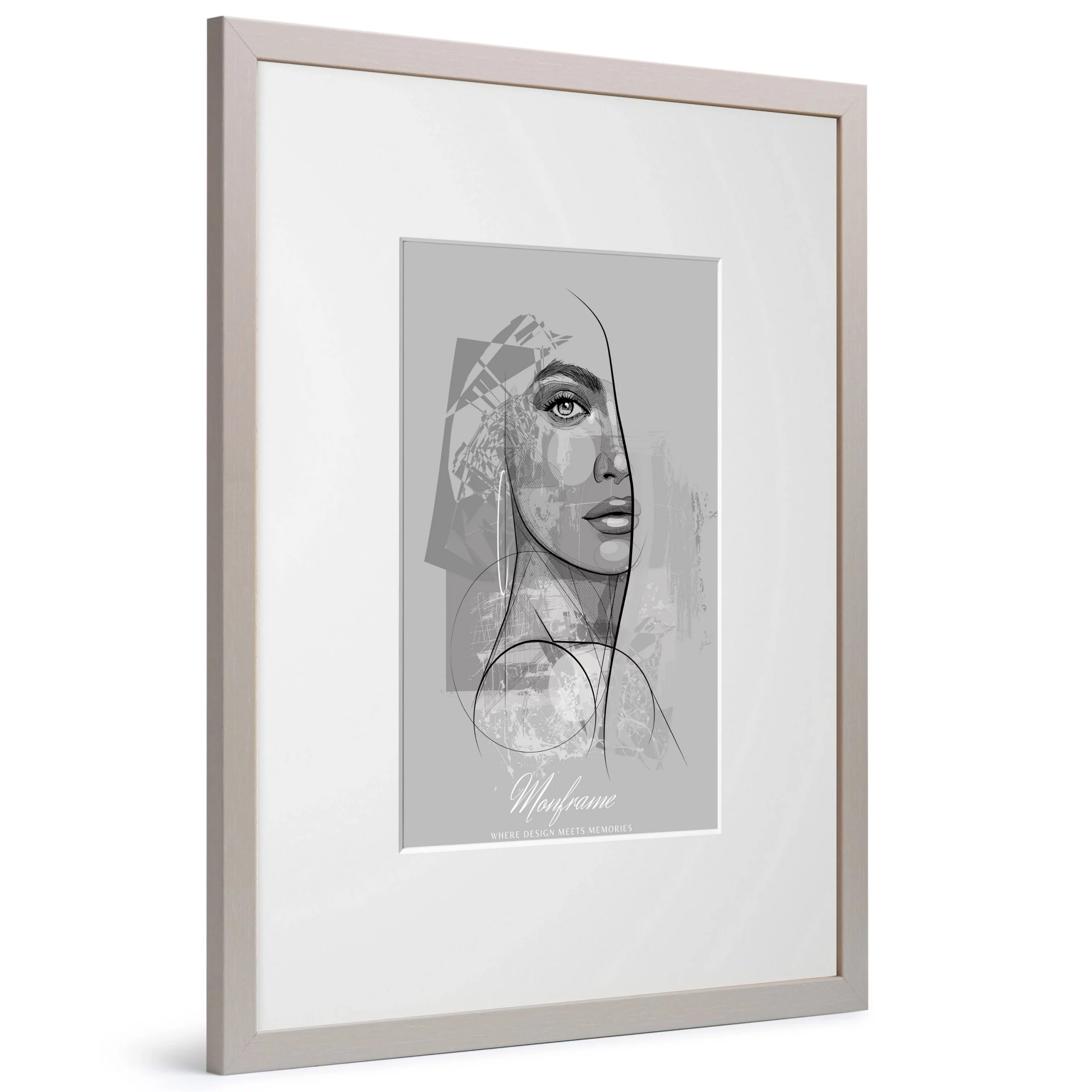 Mit unserem Bilderrahmen aus MDF-Holz, kombiniert mit einem eleganten Passepartout und sicherem Acrylglas, erhalten Sie eine stilvolle Möglichkeit, Ihre schönsten Momente festzuhalten und hervorzuheben. Der Rahmen ist in verschiedenen Größen erhältlich und bietet dank seines modernen Designs die perfekte Möglichkeit, Ihre Lieblingsbilder ansprechend zu präsentieren. Jeder Rahmen wird mit einem hochwertigen Passepartout geliefert, das speziell entworfen wurde, um Ihre Fotos oder Kunstwerke perfekt zu ergänzen. Das Passepartout hebt das Bild auf eine besondere Weise hervor, bietet einen professionellen Look und bringt eine zusätzliche Tiefe und Dimension in Ihre Präsentation.