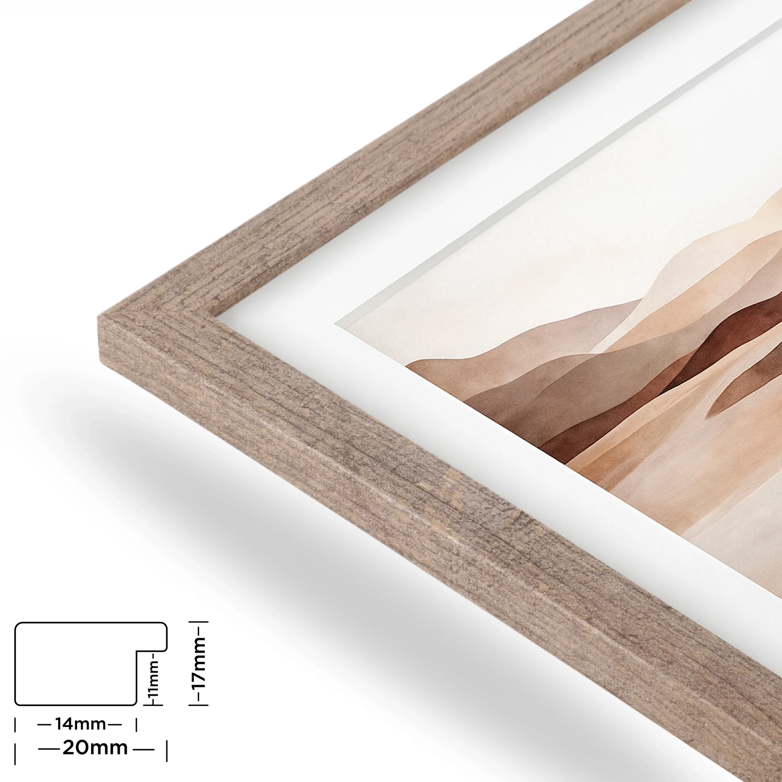 Mit unserem Bilderrahmen aus MDF-Holz, kombiniert mit einem eleganten Passepartout und sicherem Acrylglas, erhalten Sie eine stilvolle Möglichkeit, Ihre schönsten Momente festzuhalten und hervorzuheben. Der Rahmen ist in verschiedenen Größen erhältlich und bietet dank seines modernen Designs die perfekte Möglichkeit, Ihre Lieblingsbilder ansprechend zu präsentieren. Jeder Rahmen wird mit einem hochwertigen Passepartout geliefert, das speziell entworfen wurde, um Ihre Fotos oder Kunstwerke perfekt zu ergänzen. Das Passepartout hebt das Bild auf eine besondere Weise hervor, bietet einen professionellen Look und bringt eine zusätzliche Tiefe und Dimension in Ihre Präsentation.