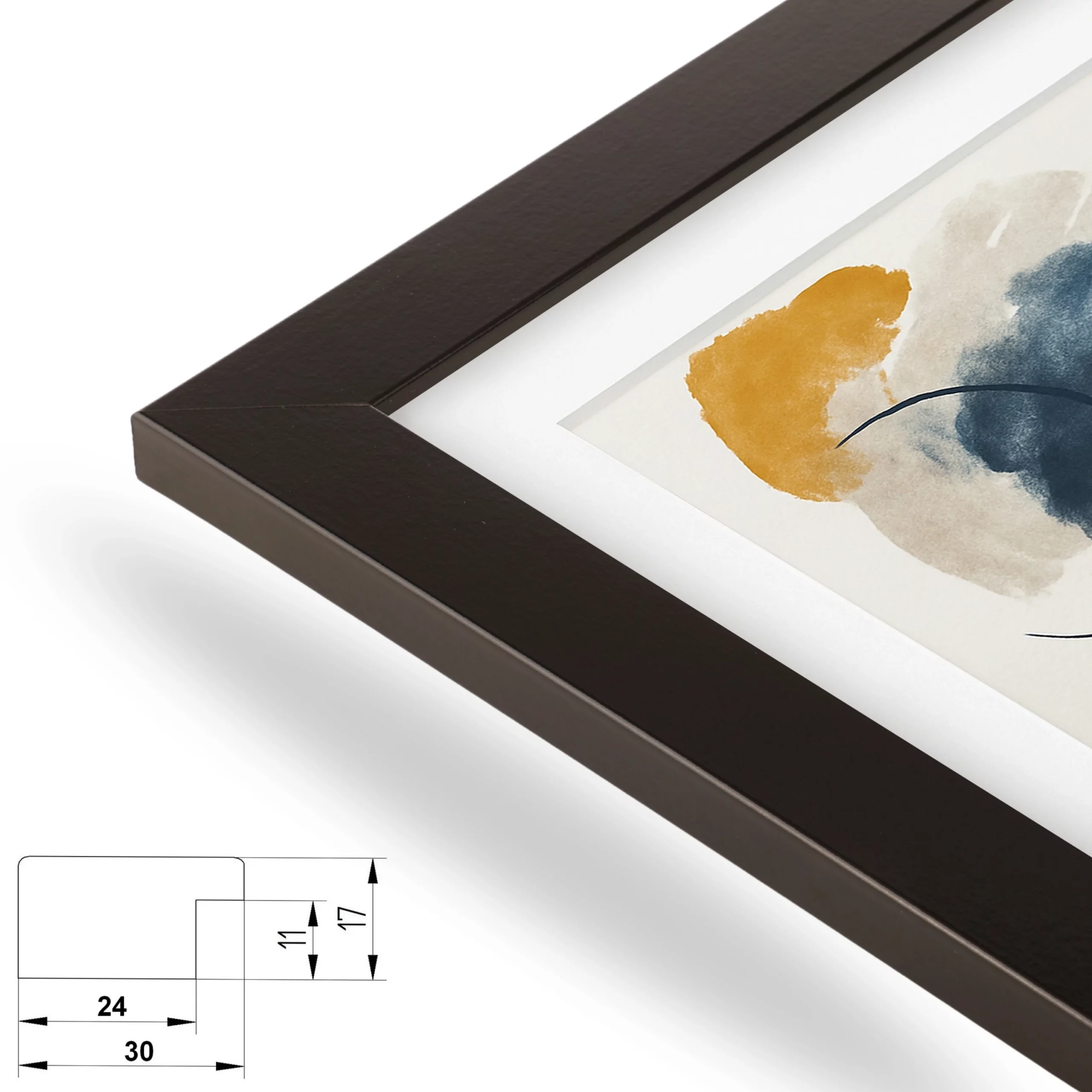 Hinweis: Das erste Maß bezieht sich immer auf die Rahmengröße, das zweite Maß auf das Bildformat bzw. den Ausschnitt des Passepartouts.