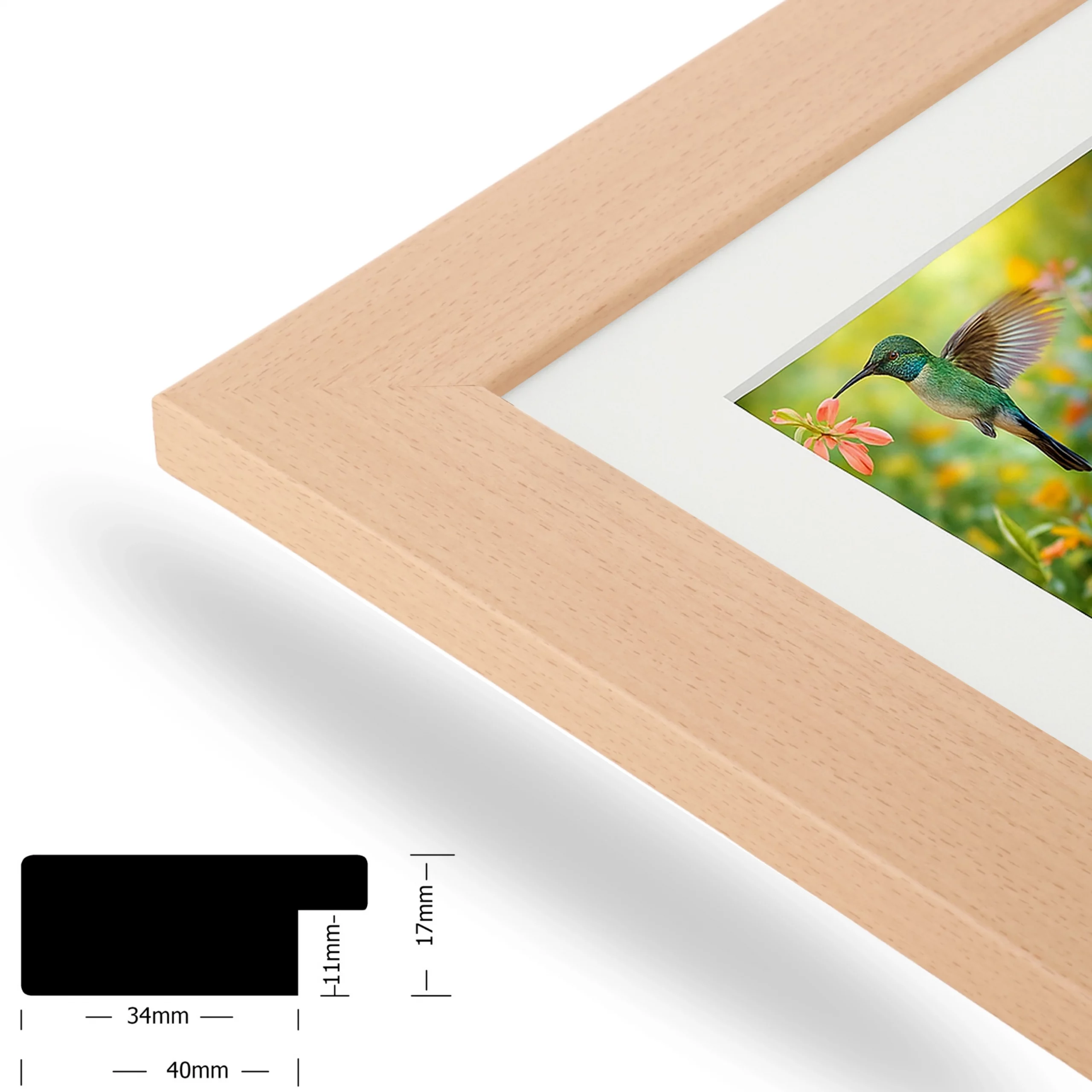 Das hochwertige Passepartout verleiht jedem Bild zusätzliche Tiefe und hebt es elegant hervor. Der Ausschnitt wird bewusst 1 cm kleiner geschnitten als das angegebene Bildmaß, sodass Ihr Foto oder Druck sicher im Rahmen sitzt und nicht verrutscht.