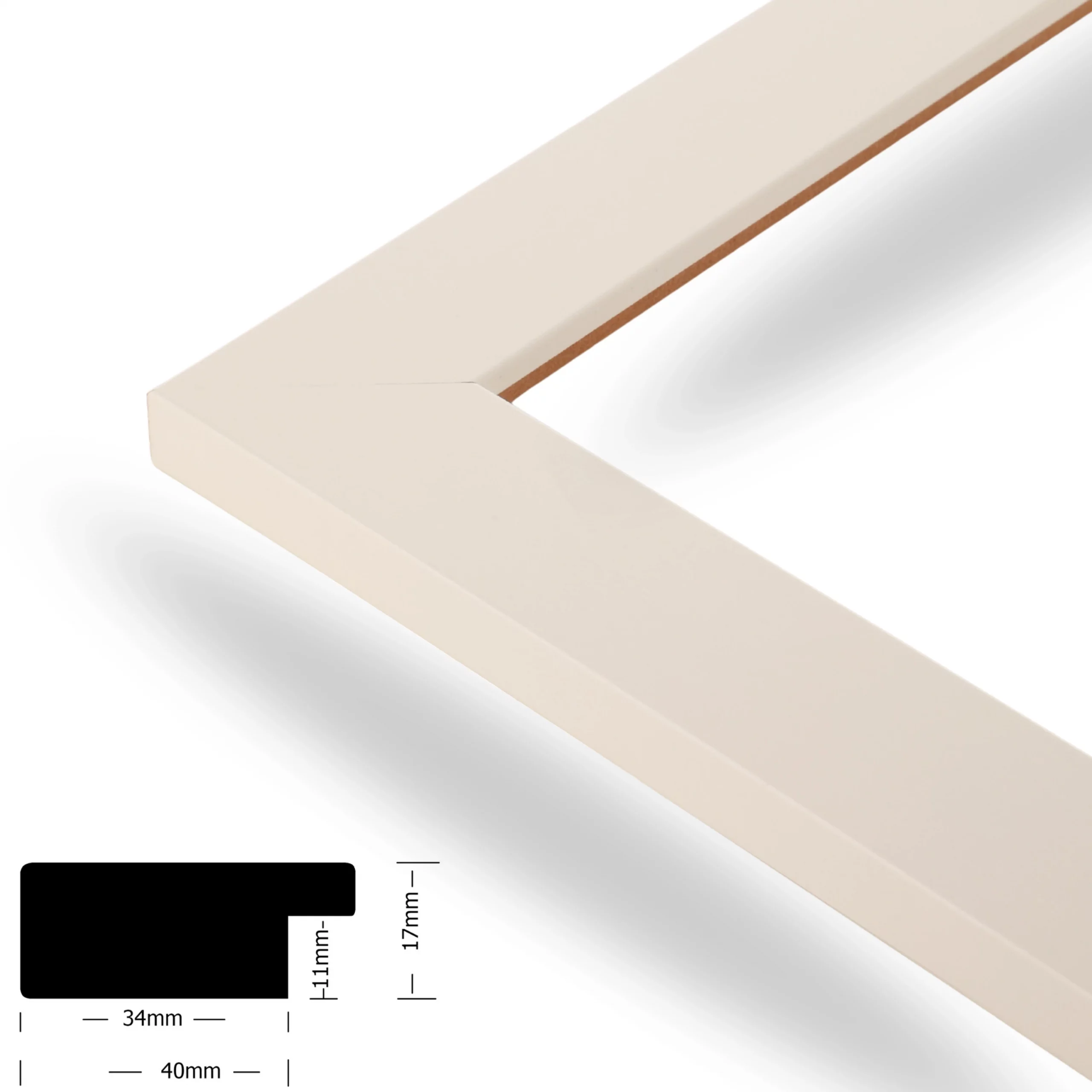 Verleihen Sie Ihren Bildern den perfekten Rahmen! Unser hochwertiger Bilderrahmen aus MDF-Holz überzeugt mit einer Leistenbreite von 40 mm und einer Leistentiefe von 17 mm. Das moderne, klare Design macht ihn zu einem echten Blickfang und sorgt dafür, dass Ihre Fotos, Poster, Kunstdrucke oder Erinnerungen stilvoll präsentiert werden. Egal ob Hoch- oder Querformat – dieser Bilderrahmen passt sich Ihren Wünschen an und sorgt für flexible Gestaltungsmöglichkeiten. Wir bieten die Möglichkeit, Bilderrahmen nach Ihren Wunschmaßen zu fertigen – perfekt für einzigartige Formate. Kontaktieren Sie uns und teilen Sie uns Ihre Wunschmaße mit – wir kümmern uns um den Rest!