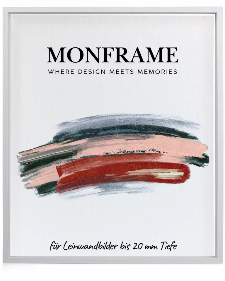 Schattenfugenrahmen sind die optimale Lösung für die Inszenierung von Leinwandbildern sowie Canvas oder Gemälden die bereits auf einem Keilrahmen gespannt sind. Das Besondere an diesem Rahmen ist die 5 mm Fuge zwischen Rahmen und Bild, diese löst das Bild optisch von dem Schattenfugenrahmen, wodurch eine Tiefenwirkung erzeugt wird, die das Kunstwerk im Rahmen schweben lässt. Unsere Leerrahmen sind MDF Leisten mit hochwertigen Dekoren ummantelt. Mit dieser Art von Rahmen kommt gute Laune in Ihre vier Wände.