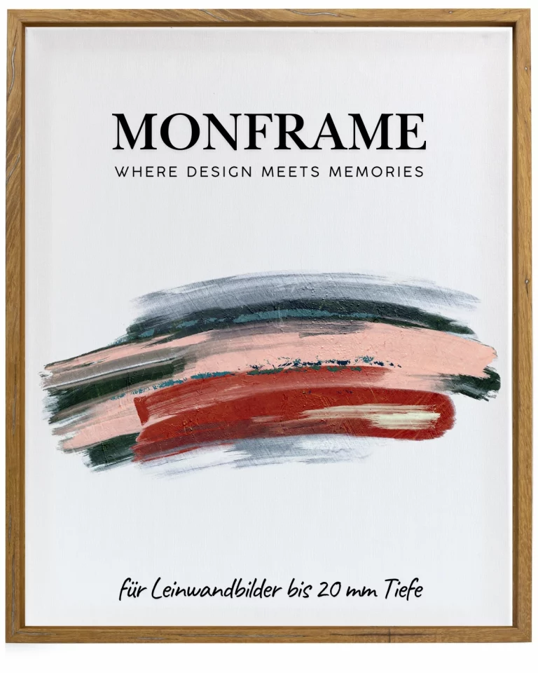 Schattenfugenrahmen sind die optimale Lösung für die Inszenierung von Leinwandbildern sowie Canvas oder Gemälden die bereits auf einem Keilrahmen gespannt sind. Das Besondere an diesem Rahmen ist die 5 mm Fuge zwischen Rahmen und Bild, diese löst das Bild optisch von dem Schattenfugenrahmen, wodurch eine Tiefenwirkung erzeugt wird, die das Kunstwerk im Rahmen schweben lässt. Unsere Leerrahmen sind MDF Leisten mit hochwertigen Dekoren ummantelt. Mit dieser Art von Rahmen kommt gute Laune in Ihre vier Wände.