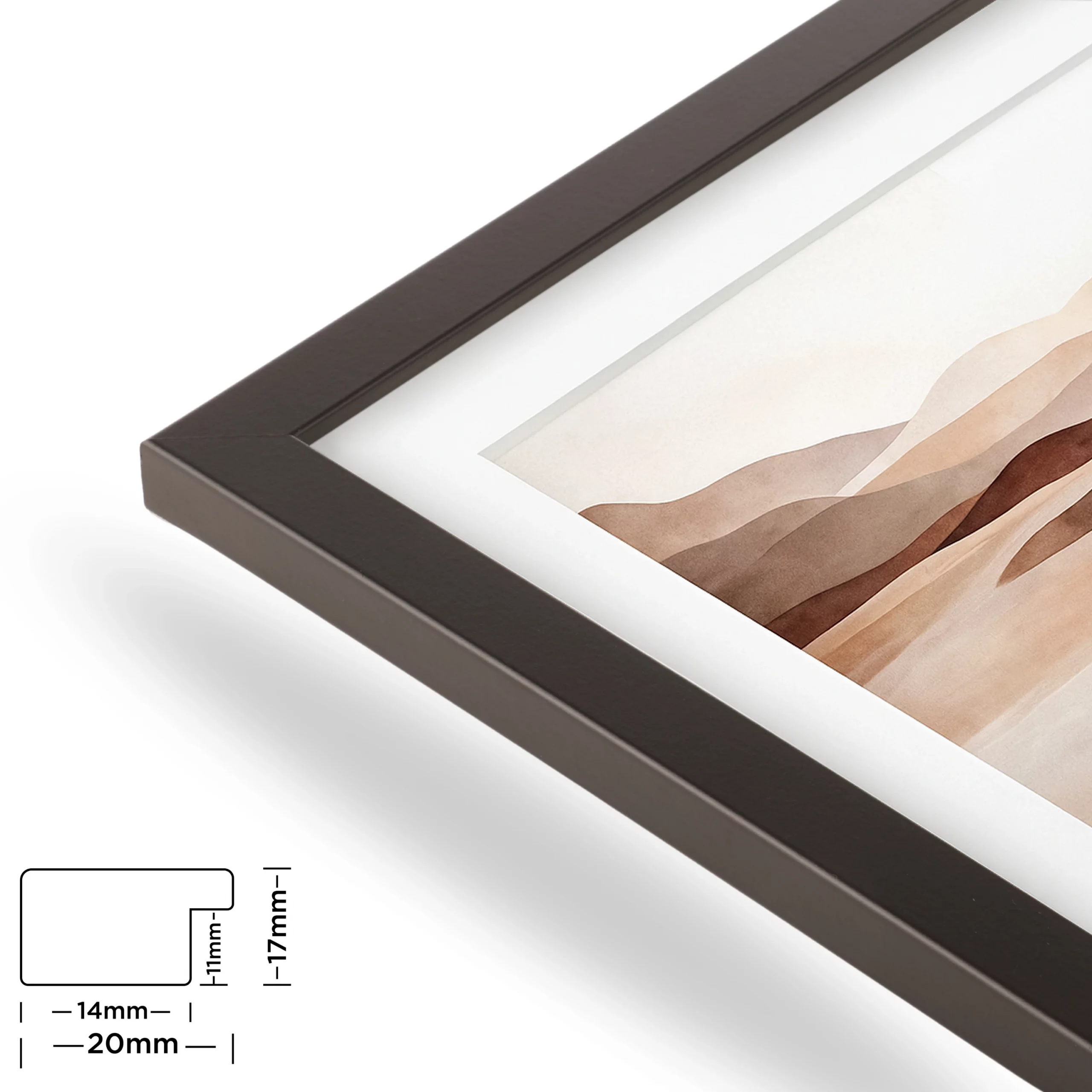Mit unserem Bilderrahmen aus MDF-Holz, kombiniert mit einem eleganten Passepartout und sicherem Acrylglas, erhalten Sie eine stilvolle Möglichkeit, Ihre schönsten Momente festzuhalten und hervorzuheben. Der Rahmen ist in verschiedenen Größen erhältlich und bietet dank seines modernen Designs die perfekte Möglichkeit, Ihre Lieblingsbilder ansprechend zu präsentieren. Jeder Rahmen wird mit einem hochwertigen Passepartout geliefert, das speziell entworfen wurde, um Ihre Fotos oder Kunstwerke perfekt zu ergänzen. Das Passepartout hebt das Bild auf eine besondere Weise hervor, bietet einen professionellen Look und bringt eine zusätzliche Tiefe und Dimension in Ihre Präsentation.