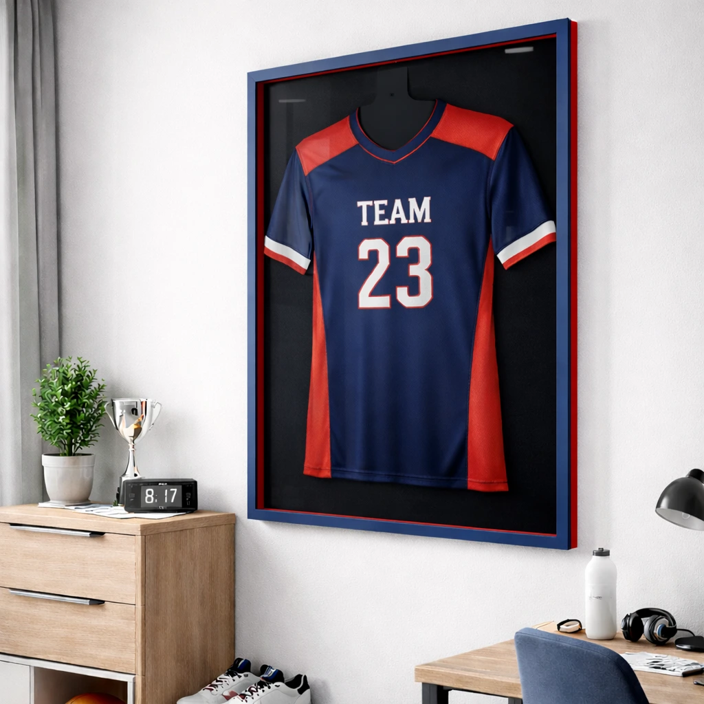 👉 Hochwertiger Objektrahmen: Bietet Platz für Objekte bis zu 30 mm Tiefe – Perfekt für Trikots, egal ob Fußball, Basketball, Handball oder T-Shirts – ideal für alle Sportfans.