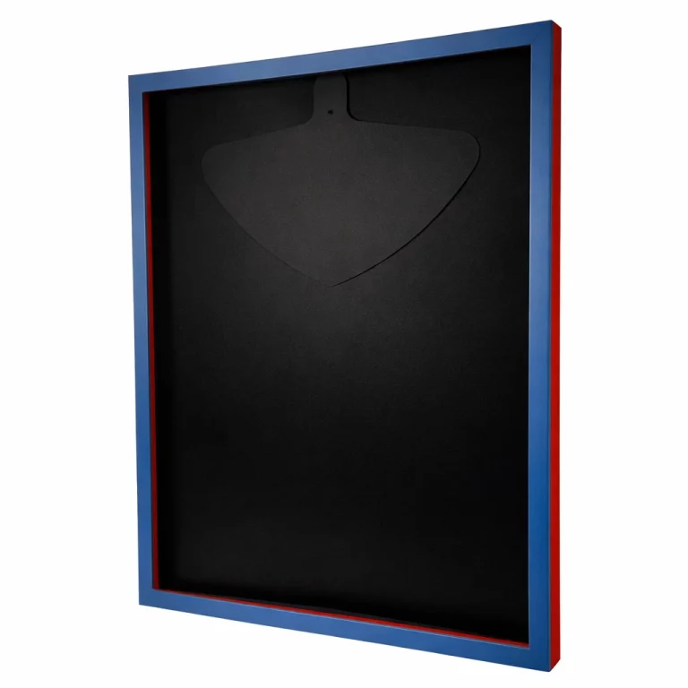 Unser exklusiver Trikotrahmen mit Drehtür ist die ideale Lösung für alle Sportfans und Sammler, die ihre Trikots professionell, stilvoll und gleichzeitig praktisch präsentieren möchten. Das Besondere an diesem Objektrahmen ist die Drehtür auf der Vorderseite, die durch einen Magnetschnäpper sicher geschlossen wird und ein einfaches Öffnen und Schließen ermöglicht, ohne dass der Rahmen von der Wand genommen werden muss. Dank dieser innovativen Konstruktion lassen sich Trikots, Sportshirts oder andere Erinnerungsstücke jederzeit unkompliziert austauschen. Gefertigt wird der Rahmen aus stabilem MDF-Holz, das mit einer hochwertigen Dekorfolie ummantelt ist, wodurch eine elegante und langlebige Optik entsteht. Die Frontscheibe besteht aus Acrylglas, das Ihr Trikot zuverlässig vor Staub, Schmutz und UV-Strahlen schützt und gleichzeitig für eine klare Sicht sorgt, sodass die Farben und Details Ihrer Sportbekleidung langfristig erhalten bleiben. Besonders praktisch ist die Möglichkeit, den Rahmen in verschiedenen Farben und Farbkombinationen zu bestellen, wodurch sich Vereins- und Nationalmannschaftstrikots perfekt mit den Rahmenfarben abstimmen lassen. Ob als persönliche Erinnerung an sportliche Erfolge, als Blickfang im Wohnzimmer, Büro oder Vereinsheim oder als Geschenkidee zu Geburtstagen, Jubiläen oder besonderen Sportevents – dieser Trikotrahmen ist ein absolutes Must-have für jeden Sportbegeisterten.