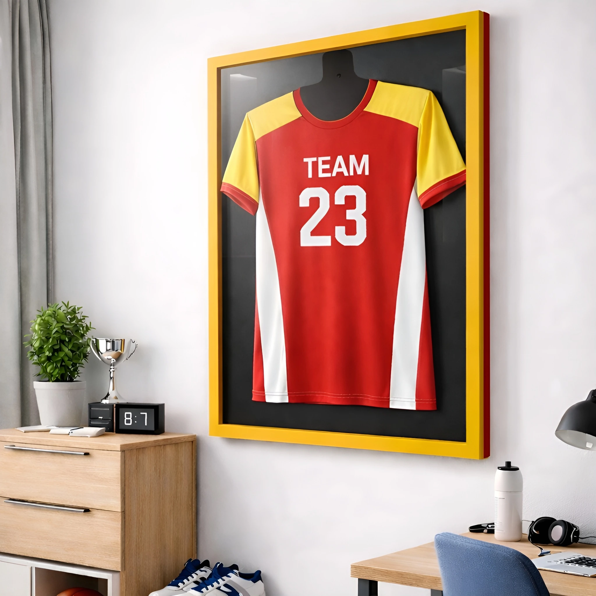 👉 Hochwertiger Objektrahmen: Bietet Platz für Objekte bis zu 30 mm Tiefe – Perfekt für Trikots, egal ob Fußball, Basketball, Handball oder T-Shirts – ideal für alle Sportfans.