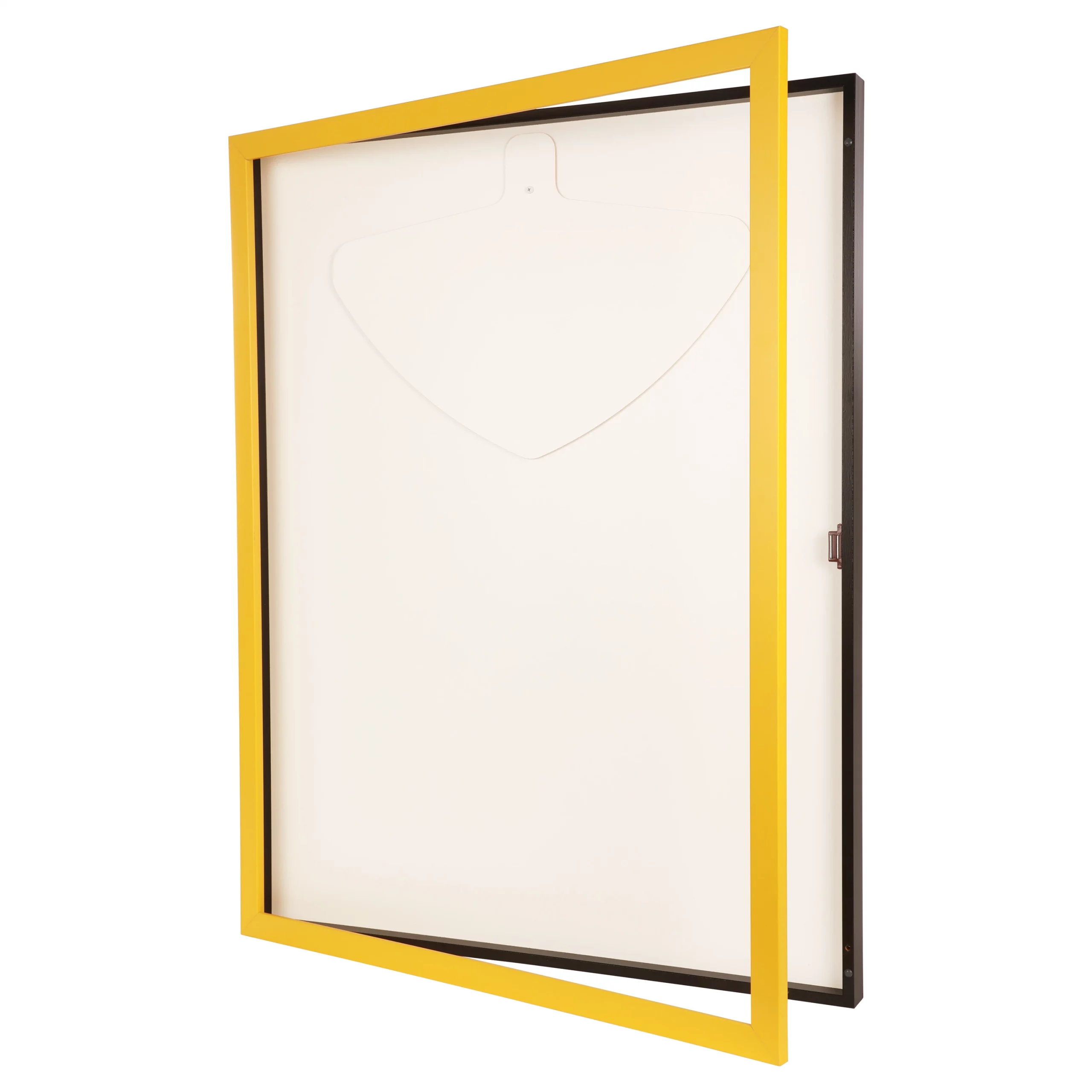 Unser exklusiver Trikotrahmen mit Drehtür ist die ideale Lösung für alle Sportfans und Sammler, die ihre Trikots professionell, stilvoll und gleichzeitig praktisch präsentieren möchten. Das Besondere an diesem Objektrahmen ist die Drehtür auf der Vorderseite, die durch einen Magnetschnäpper sicher geschlossen wird und ein einfaches Öffnen und Schließen ermöglicht, ohne dass der Rahmen von der Wand genommen werden muss. Dank dieser innovativen Konstruktion lassen sich Trikots, Sportshirts oder andere Erinnerungsstücke jederzeit unkompliziert austauschen. Gefertigt wird der Rahmen aus stabilem MDF-Holz, das mit einer hochwertigen Dekorfolie ummantelt ist, wodurch eine elegante und langlebige Optik entsteht. Die Frontscheibe besteht aus Acrylglas, das Ihr Trikot zuverlässig vor Staub, Schmutz und UV-Strahlen schützt und gleichzeitig für eine klare Sicht sorgt, sodass die Farben und Details Ihrer Sportbekleidung langfristig erhalten bleiben. Besonders praktisch ist die Möglichkeit, den Rahmen in verschiedenen Farben und Farbkombinationen zu bestellen, wodurch sich Vereins- und Nationalmannschaftstrikots perfekt mit den Rahmenfarben abstimmen lassen. Ob als persönliche Erinnerung an sportliche Erfolge, als Blickfang im Wohnzimmer, Büro oder Vereinsheim oder als Geschenkidee zu Geburtstagen, Jubiläen oder besonderen Sportevents – dieser Trikotrahmen ist ein absolutes Must-have für jeden Sportbegeisterten.
