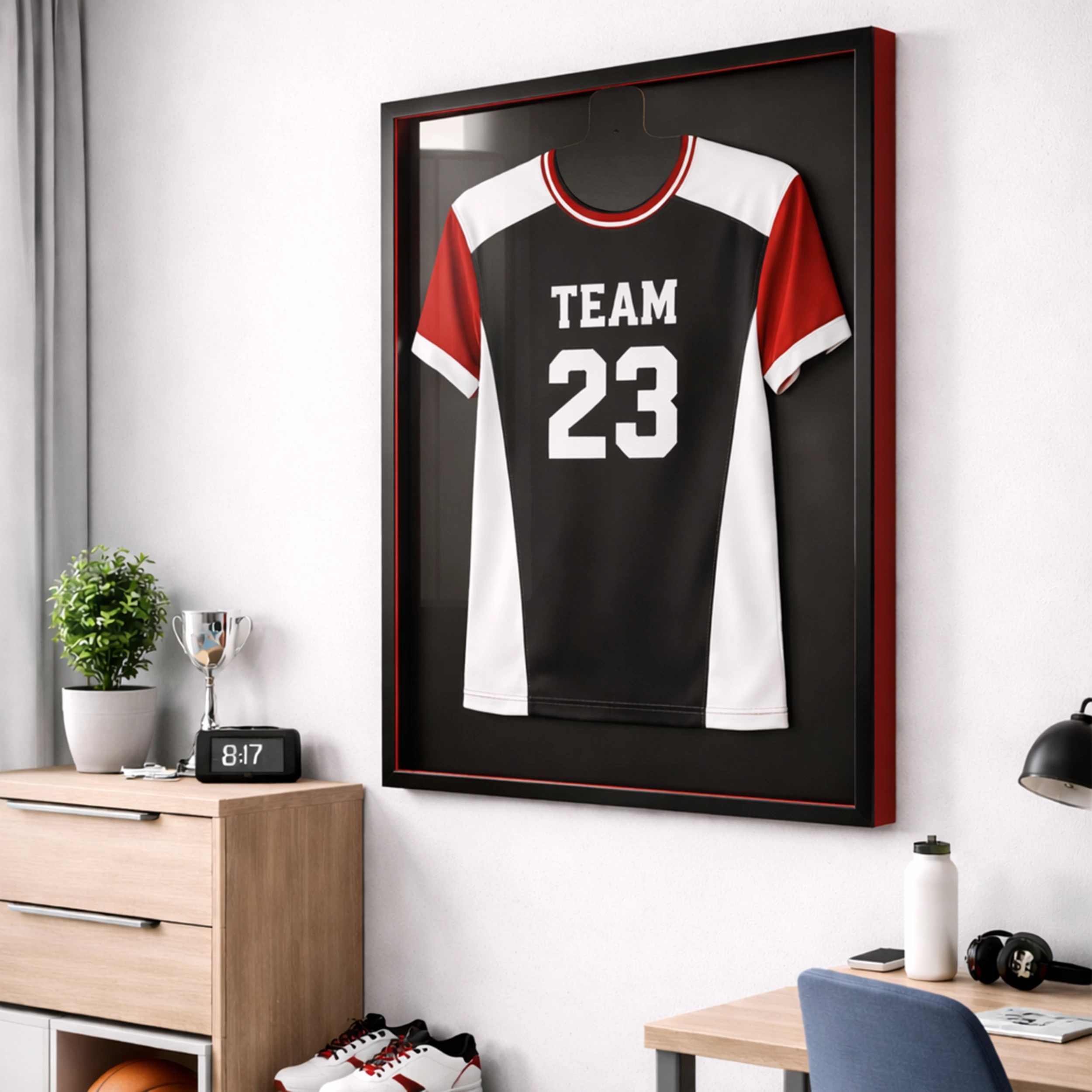 👉 Hochwertiger Objektrahmen: Bietet Platz für Objekte bis zu 30 mm Tiefe – Perfekt für Trikots, egal ob Fußball, Basketball, Handball oder T-Shirts – ideal für alle Sportfans.