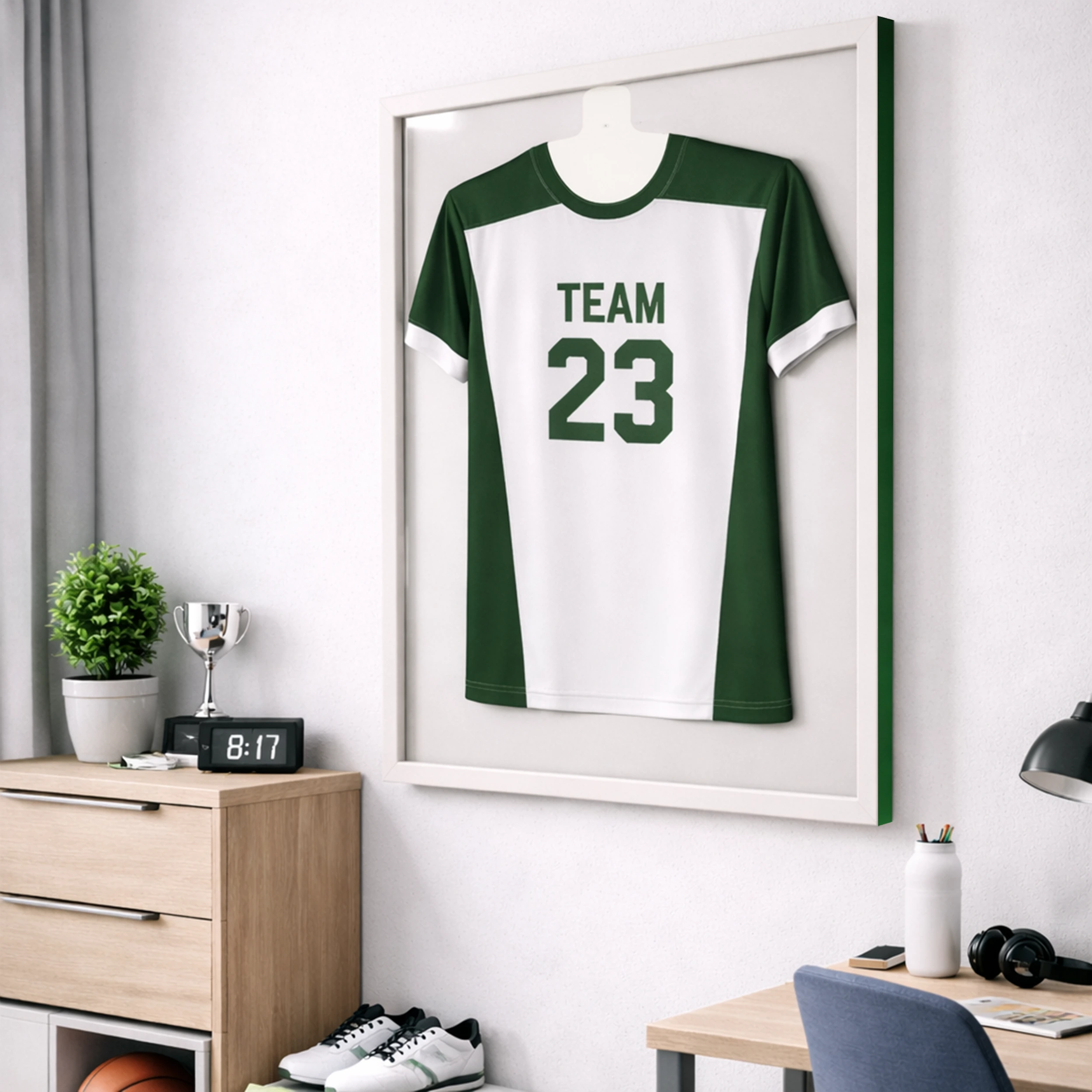 👉 Hochwertiger Objektrahmen: Bietet Platz für Objekte bis zu 30 mm Tiefe – Perfekt für Trikots, egal ob Fußball, Basketball, Handball oder T-Shirts – ideal für alle Sportfans.