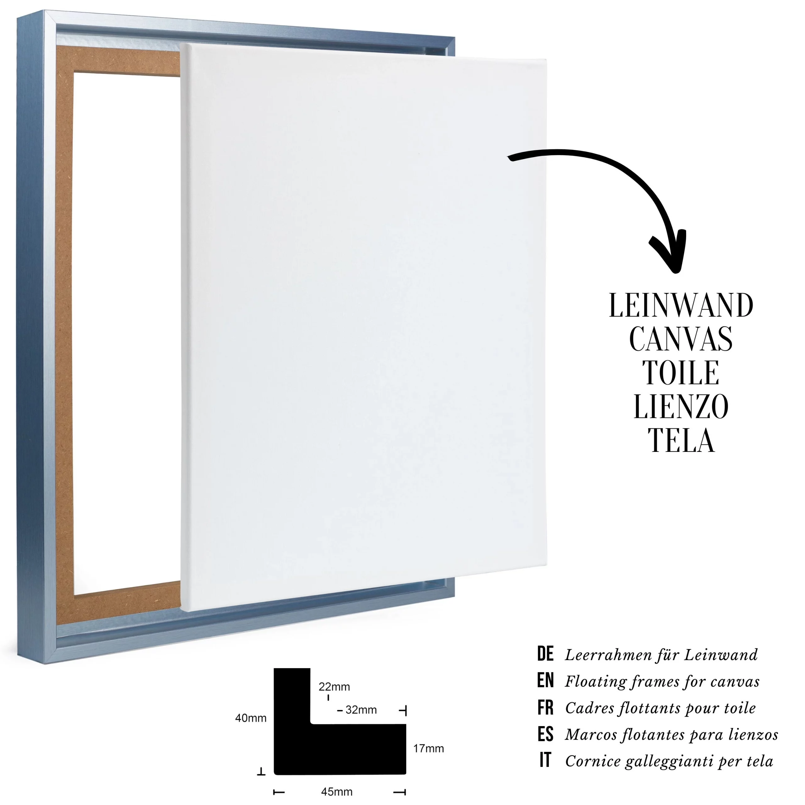Die Keilrahmen sorgen für einen tollen Schwebeeffekt und besitzen eine Tiefe von 2,3 cm. Die Außenmaße des Schattenfugen-Rahmens sind 3,5 cm größer als das ausgewählte Format.