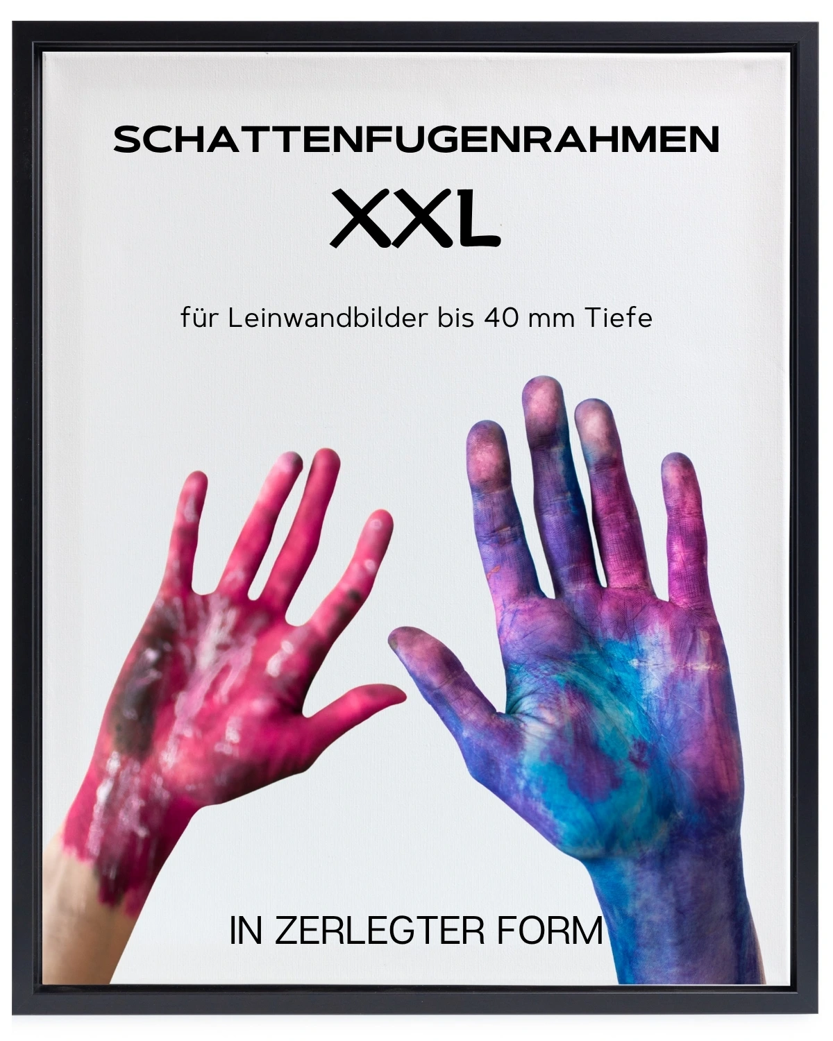 Entdecken Sie unseren hochwertigen Schattenfugenrahmen XXL in praktischer, zerlegter Form – ideal für eine sichere Lieferung und günstigere Versandkosten. Die präzise gefertigten Rahmenecken fügen sich nahtlos zusammen, sodass der Rahmen nach dem Zusammenbau wie ein bereits montierter Bilderrahmen wirkt. Die Montage gelingt mühelos in nur wenigen Minuten.